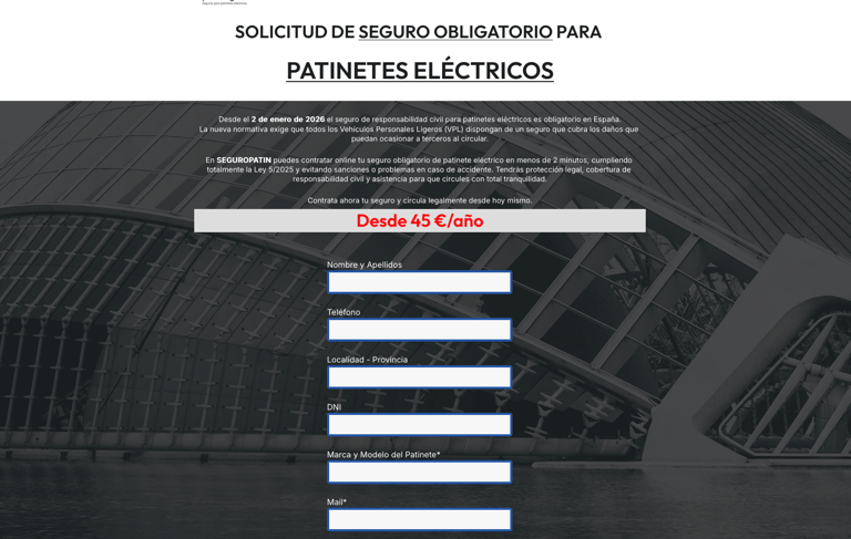 Rellena el formulario de la web o contacta por WhatsApp para solicitar información sobre el seguro para tu patinete eléctrico.